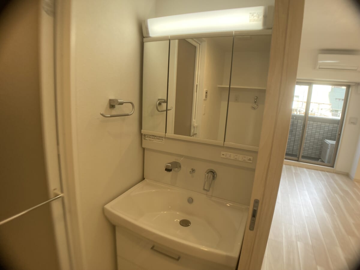 脱衣所内には「三面鏡付き洗面台」が完備!