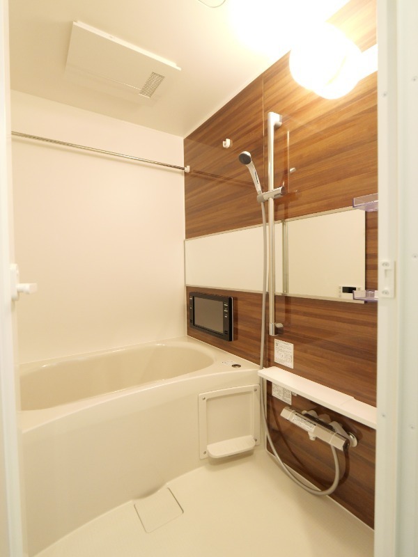 プレジオシリーズのなかでもかなり特徴的な「浴室TV付き」のバスルームは、高級感溢れるデザインパネルが採用されています。