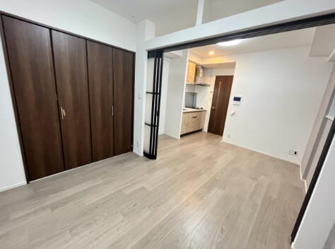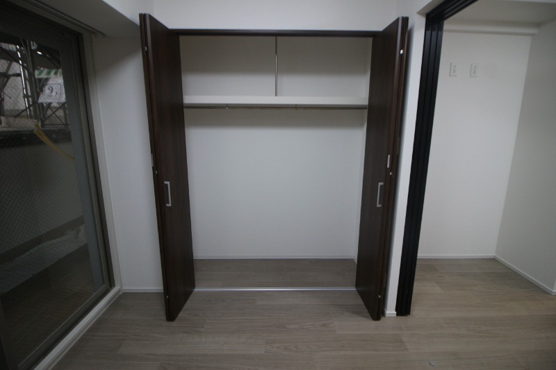 洋室内には両開き式の収納棚付きクローゼットがあり、2人暮らしでも十分の収納力をそなえています。