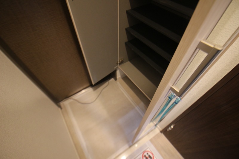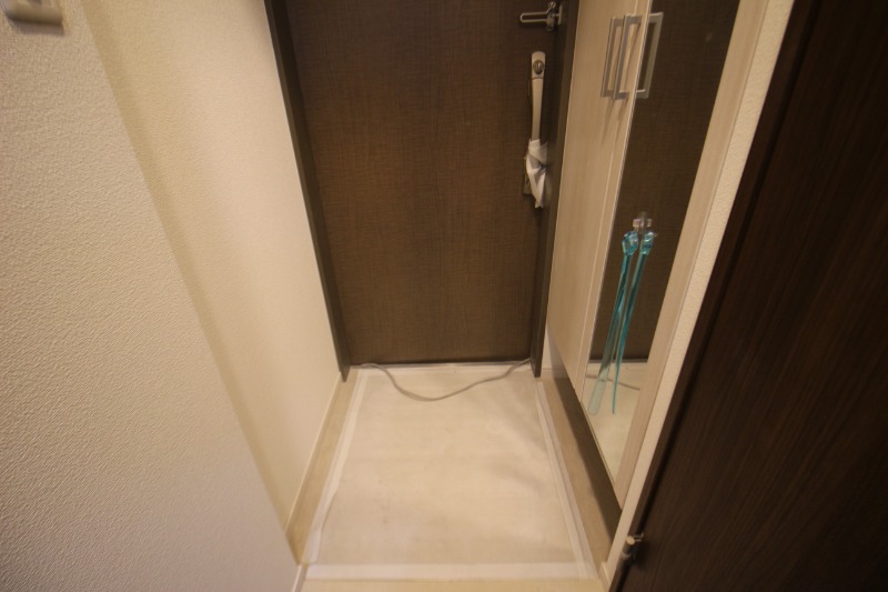 玄関スペースには鏡面付きの大容量シューズボックスが備わっており、お出かけ前の身だしなみチェックにも便利です。