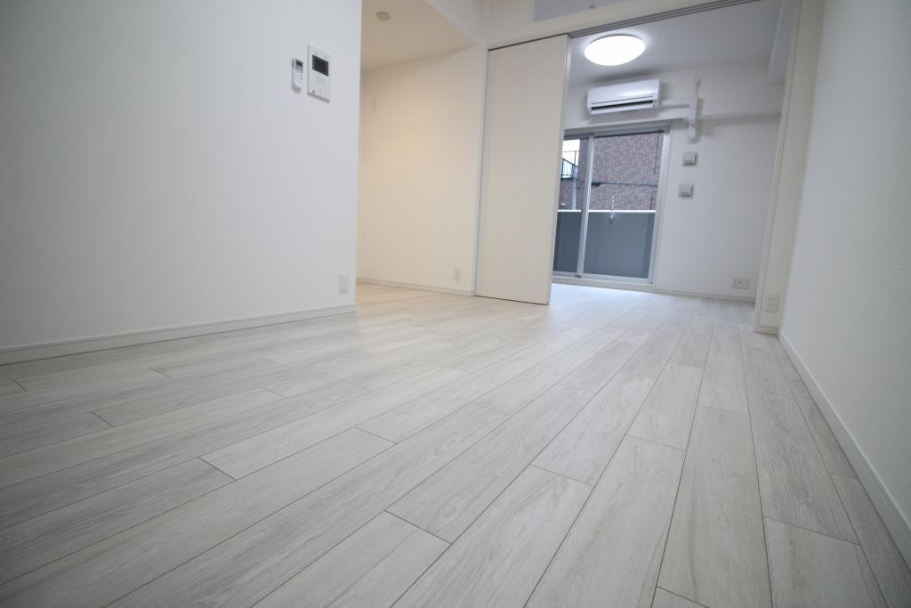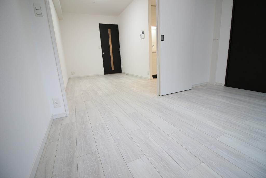 白を基調とした建具とフローリングを採用した、明るく開放感のある1LDKは室内全体に統一感があり、清潔感のある空間を演出します。