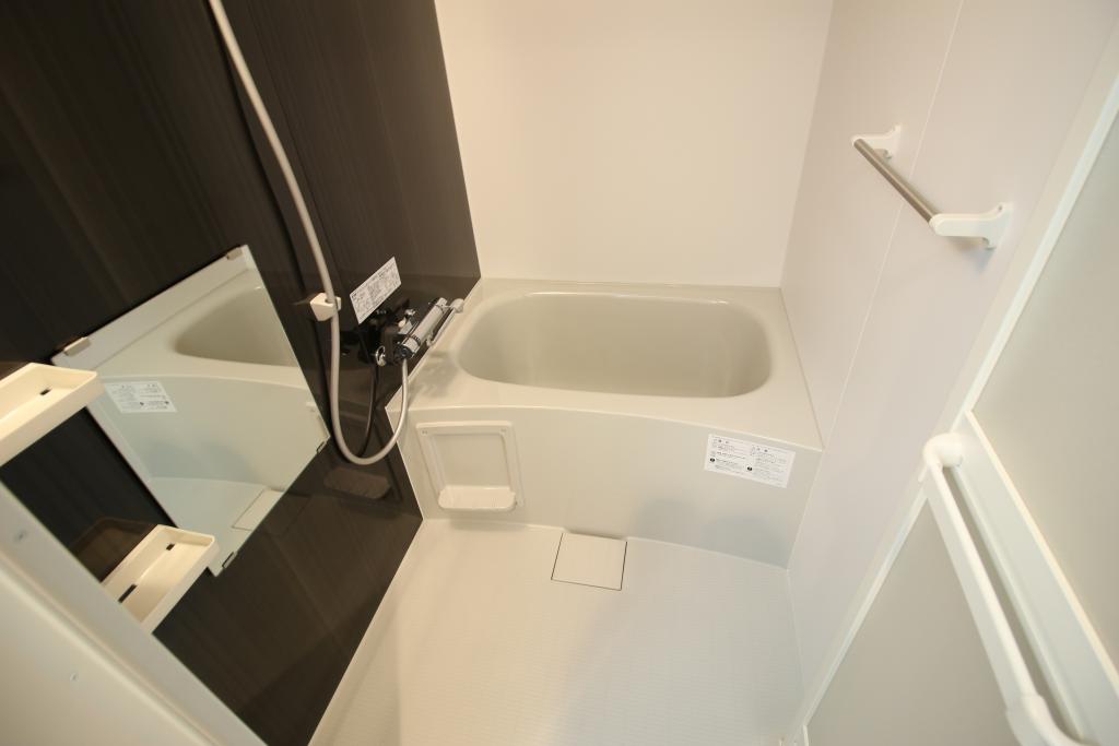 黒のデザインパネルを採用した、シックで落ち着きのあるバスルームは上質感のある空間で、毎日のバスタイムを心地よく演出します。