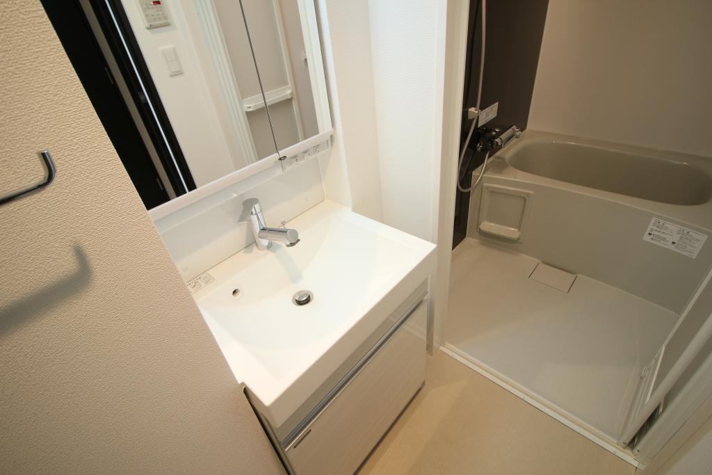 洗面台にはコンセントも付いており、鏡面裏の収納スペースも確保されているので身支度から家事まで快適に行える、実用性に優れた空間となっています。