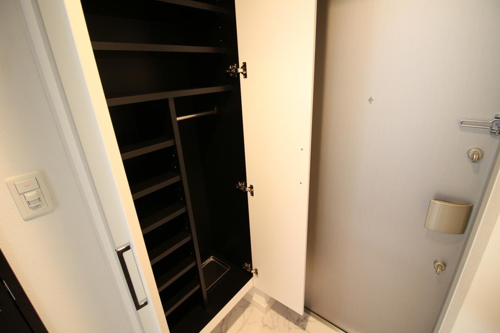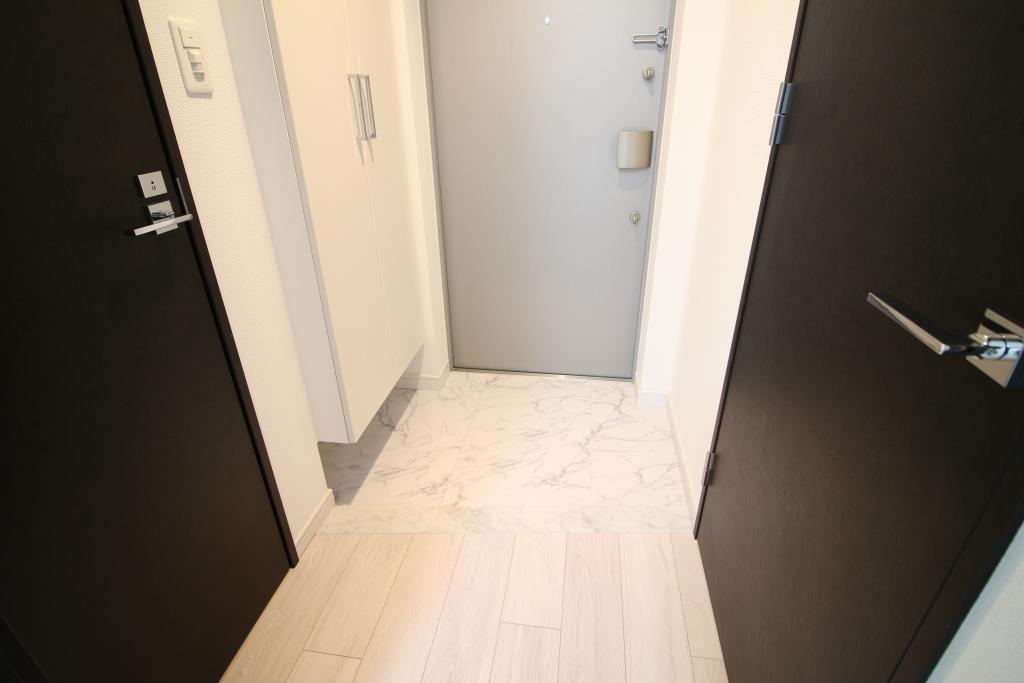 収納力のあるシューズボックスを備えた、すっきりとした玄関スペースには人感センサー付きのオートライトが採用されており、夜間の帰宅時も自動で点灯するため安心です。