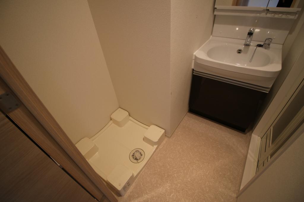 洗濯機置き場を備えた、使い勝手の良い脱衣所スペースは生活動線もバッチリ。