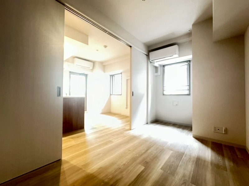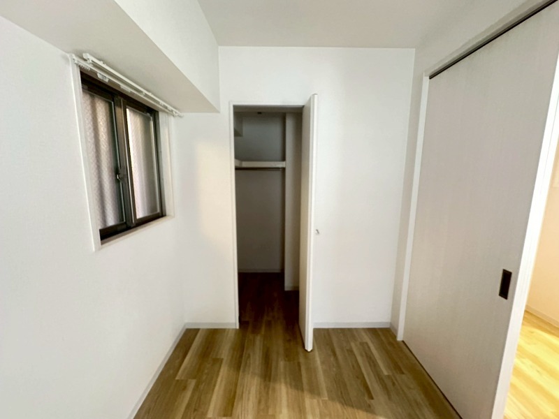 約6帖の洋室には大容量のウォークインクローゼットを備えており、衣類や荷物をすっきり収納できます。
