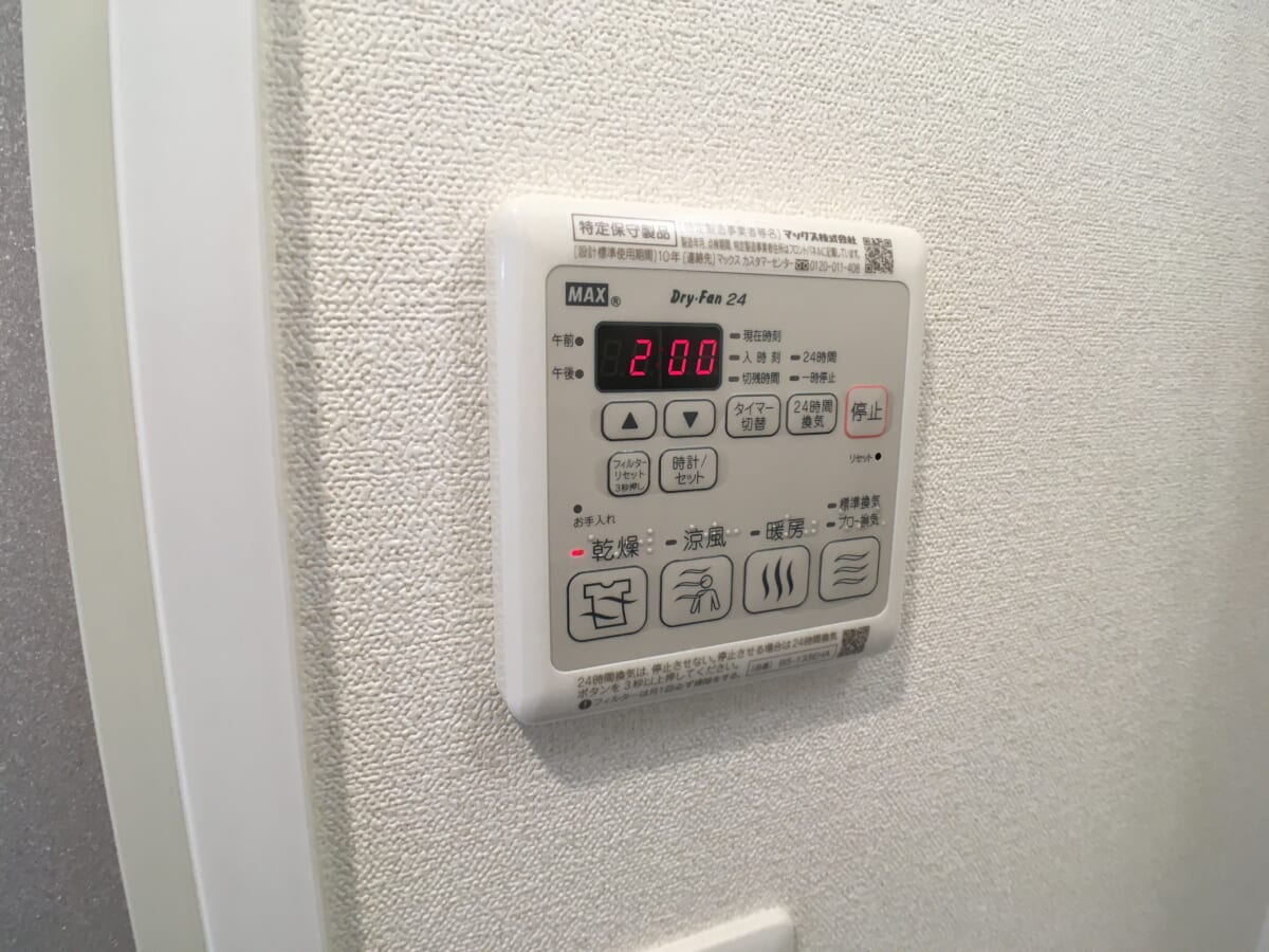 白を基調とした明るく清潔感のあるバスルームには、浴室乾燥・暖房機能を備え、機能性にも配慮した設計。雨の日や花粉の時期でも洗濯物を快適に乾かせるほか、冬場のヒートショック対策としても安心です。