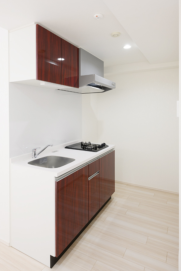 リビング空間と程よく分かれた独立タイプのシステムキッチンを採用。2口ガスコンロ付きで同時調理が可能なため、毎日のお料理も効率的に行えます。