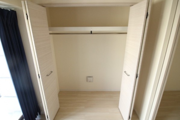 洋室には大容量のクローゼットを備え、衣類や荷物もすっきり収納可能。コンパクトながら快適性を高めた住まいです。