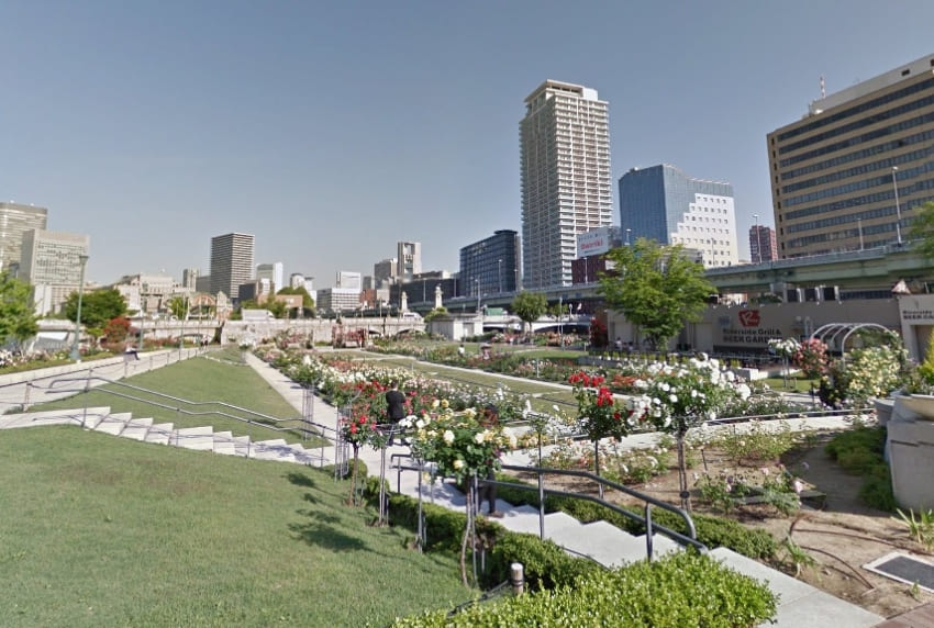 川沿いには「中之島公園」があり、川沿いの散歩や植物観賞を楽しむことができ、都会にいながらも自然を感じることができます。