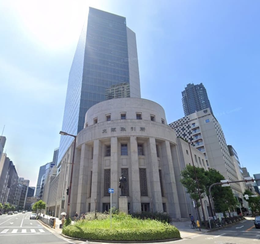 大阪取引所(旧、大阪証券取引所)は波橋(通称・ライオン橋)の南東に建つレトロ建築で有名です。円筒形の壮大な白亜の外観と、ステンドグラスが美しい玄関ロビーが特徴な大阪取引所。平日は案内付き見学ツアーも開催しており多くの観光客の方で賑わっております。自由見学も可能なので近くに立ち寄った際はぜひ見学してみてください!